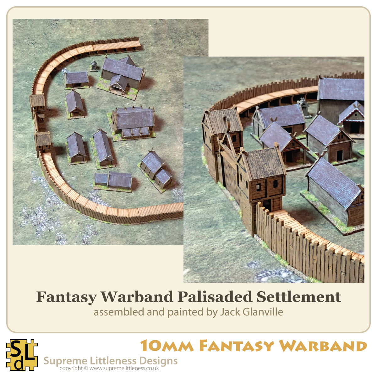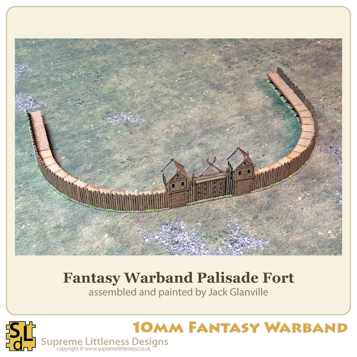 Each palisade wall section can accommodate a Warmaster infantry unit on three 40x20mm bases.